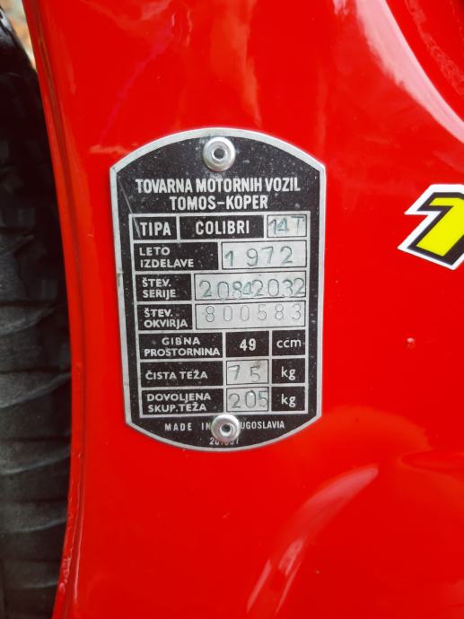 Tomos T14 TLS REGISTRIRAN 49 cm3, 1972 god.