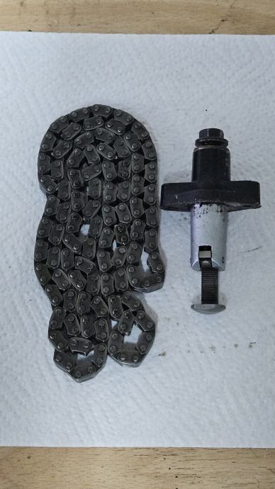 Španer je malo izlizan na jednom mjestu (vidi se na slici) a lanac je rastegnut za pola zuba ali sve je to još uvijek sasvim uredu za redovnu neopterećenu vožnju, pogotovo španer - treba mu samo novi dihtung. Ja sam mijenjao jer sam mijenjao sve...