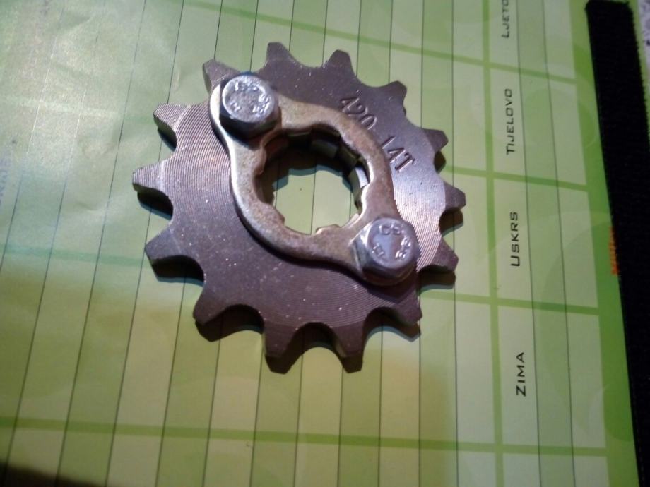 Prodajem prednji rabljeni lančanik za atv quad ili cross koji mi neodgovara na prihvat osovine, korak 420 14 zuba debljina 6 mm mjere na fotografiji