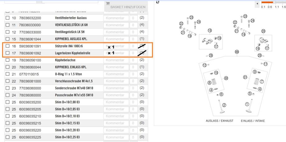 Igličasti ležaj klackalice ispušni/usisni 1 kom