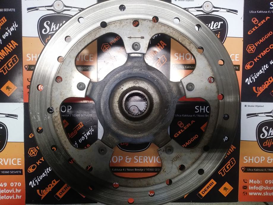 Originalan , rabljen zadnji diska za Piaggio Beverly stariji model. Glavčina u kompletu sa diskom.