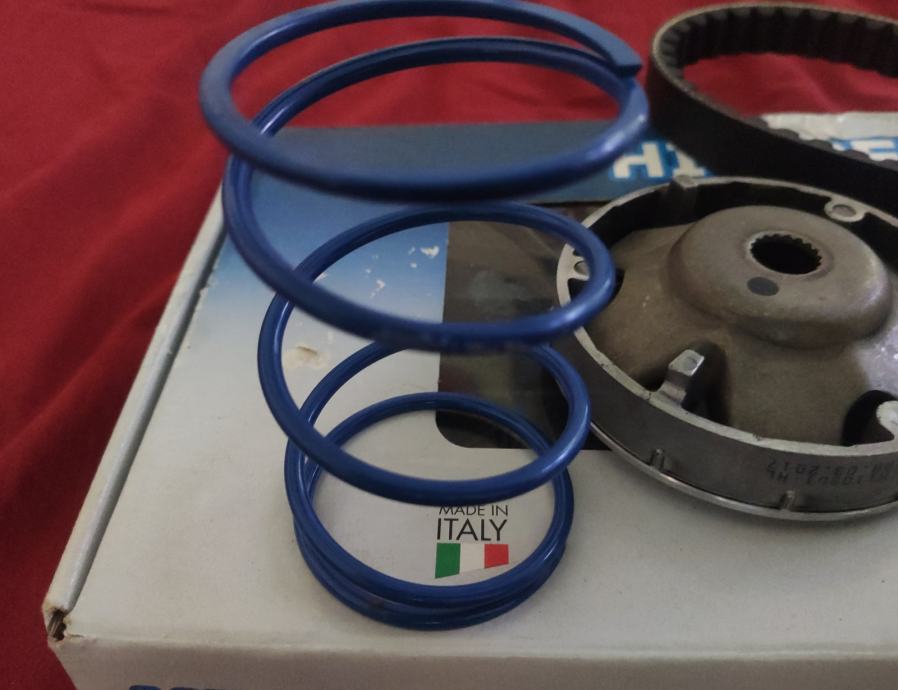 Novi Polini Hi speed variomat sa 5 g rolicama, centralni feder 50 mm/20 kg i kevlar remen za Piaggio 50 ccm mašine u kompletu ili odvojeno. Kupljeno i probano, ali nije odgovaralo ostalim komponentama.