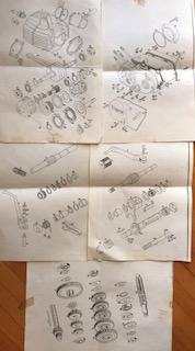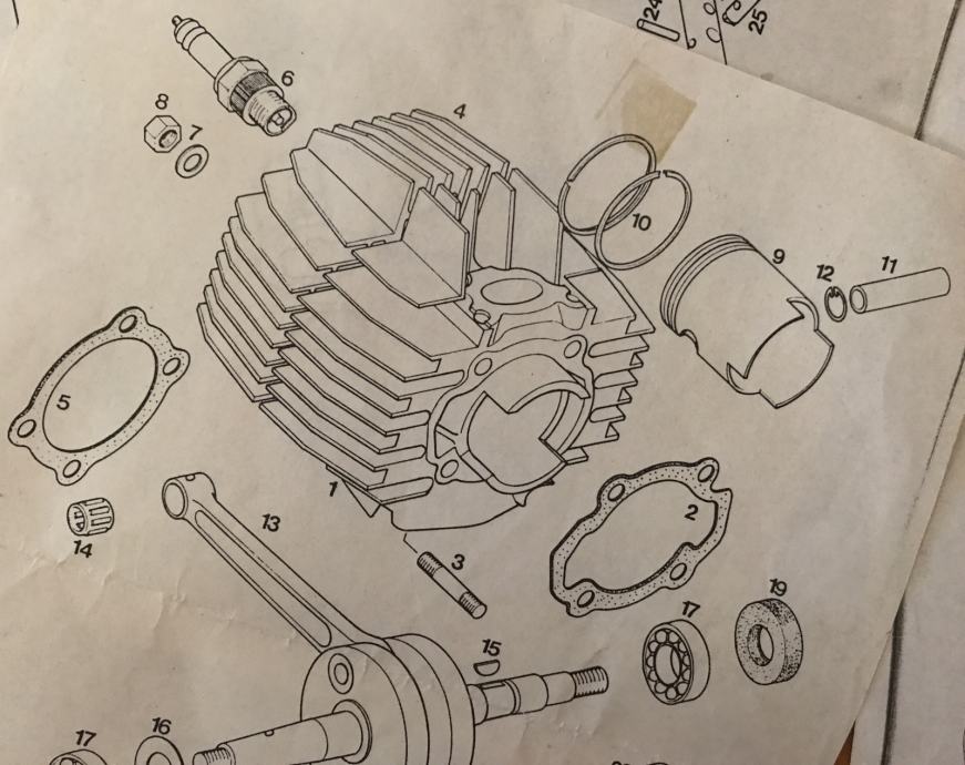 Tomos CTX 80 - crteži presjeka motora sa svim djelovima / 5x A4 /26,09