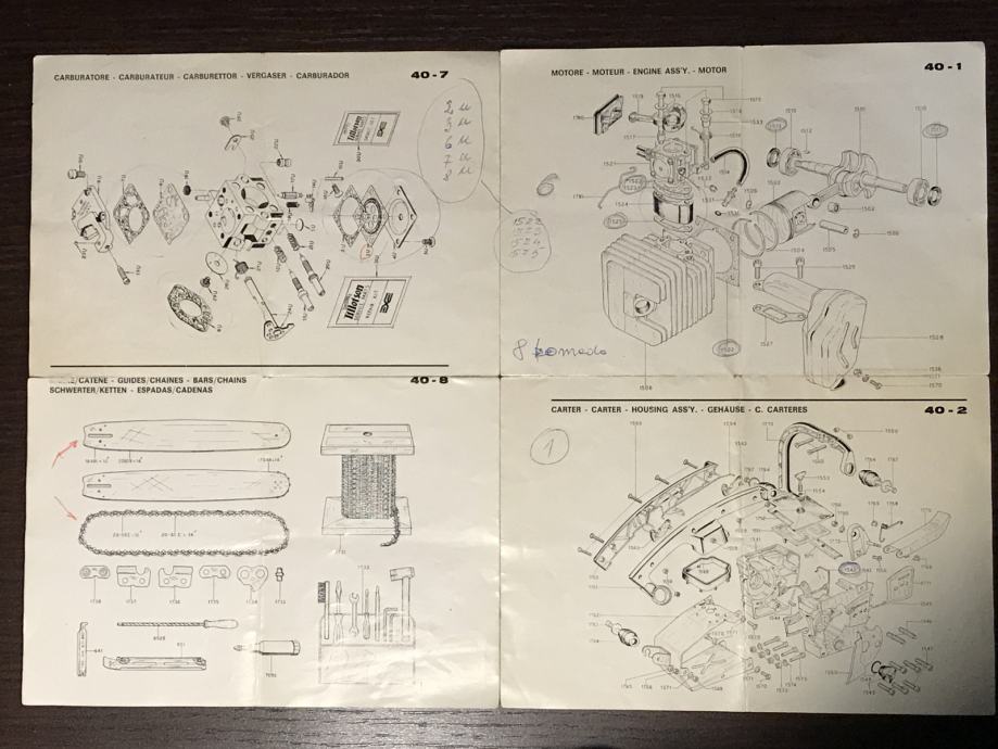 i prospekt presjeka motora sa svim djelovima od motorne pile = za 26,09 kn.