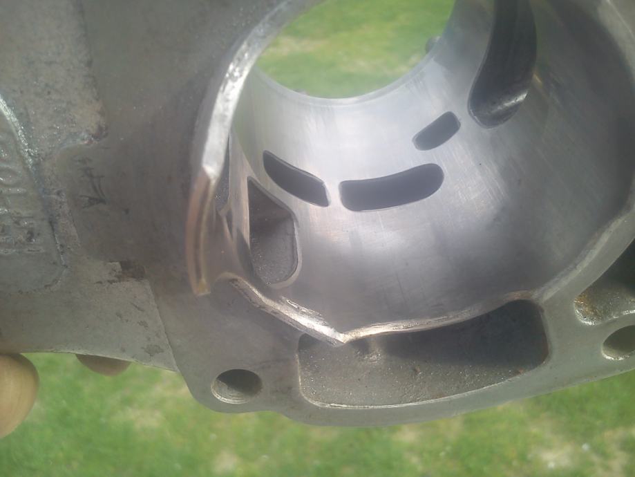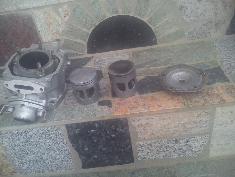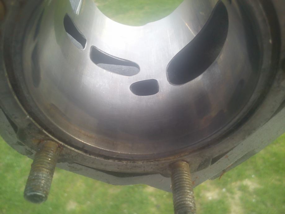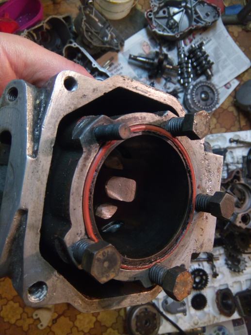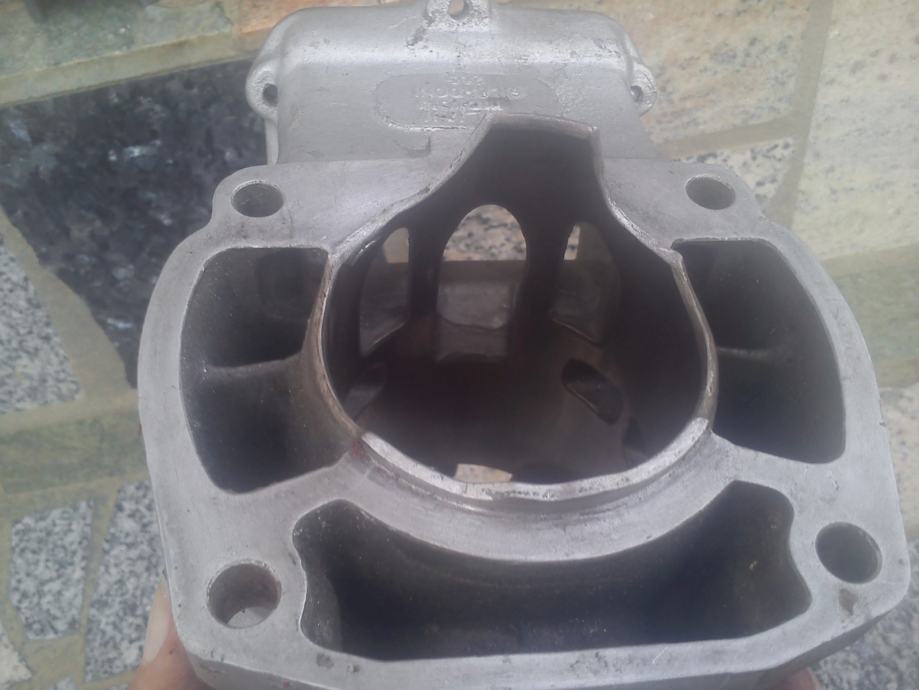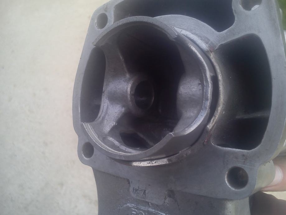 cilindar ima izvrstan nikasil, sredili su ga majstori jer je nekome pao i polomili ga odispod, ja sam bijaksom sve oštre rubove pobrusio i cilindar može voziti tako (pogledajte na priloženoj slici kako izgledaju cilindri od legendarnog suzuki rgv gamma 500 od oko 180 konja i koliko pera dolje imaju, NISU MOJI ),najbolje bi bilo ubaciti piksu samo u donjoj zoni gdje su pera i nema nikakvih problema, gornji radni dio cilindra ima izvrstan nikasil i vozit će dugo i odlično