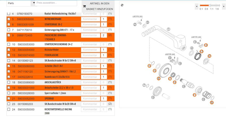 Zupčanik+uključivač+opruga nožnog startera KTM 400-450-525 SX/EXC