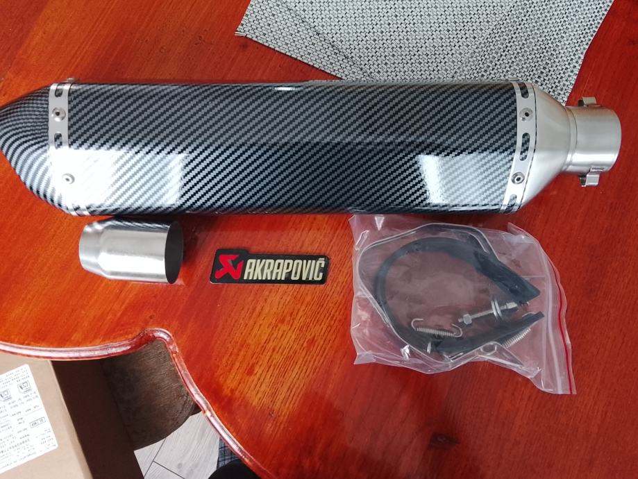 Univerzalni auspuh akrapović bez atesta.Auspuh je nov nikad korišten dožina 50cm redukcija šelna db kiler opruge sve u kompletu.