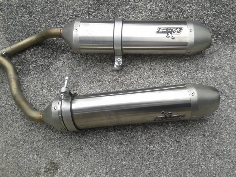Prodajem Kucelj topove sa granama i prigušivačima doslovno kao nove.Odličan zvuk, manje vibracija i bolje performanse. Kupljeni u 8.mjesecu 2014, bili na Aprili Pegaso Strada 2007 oko 3000 km. Razlog prodaje, prodao sam motor sa original auspusima. Auspusi se nalaze u Solinu, moguće slanje poštom.