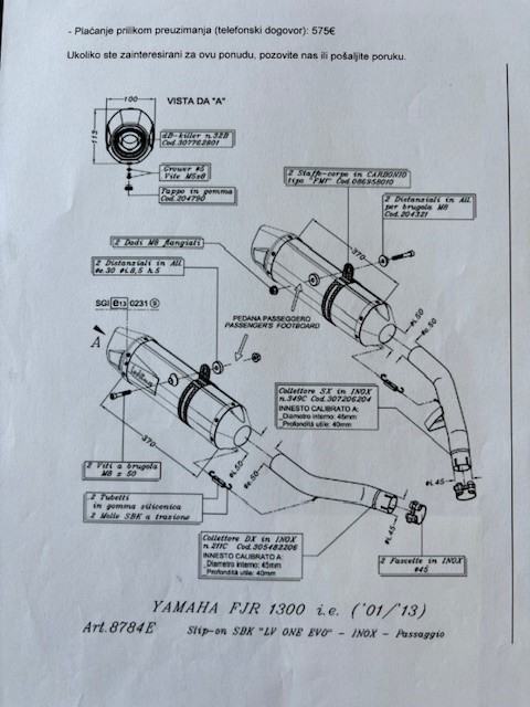Topovi (auspuh) Leo Vince Slip-On Evolution II za Yamahu FJR 1300, gotovo nekorišteni, kao novi, sa svom dokumentracijom za homologaciju.
