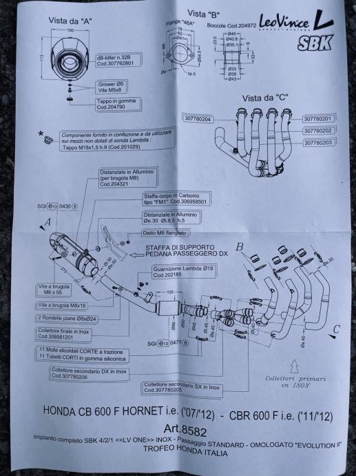 Honda cb 600 f Hornet (2007-2012) i Honda Cbr 600 f (2011-2012) LEOVINCE LV-One evo II kompletan ispušni sistem 4/2/1.. ispuh je homologiran, s atestom za upis u prometnu.