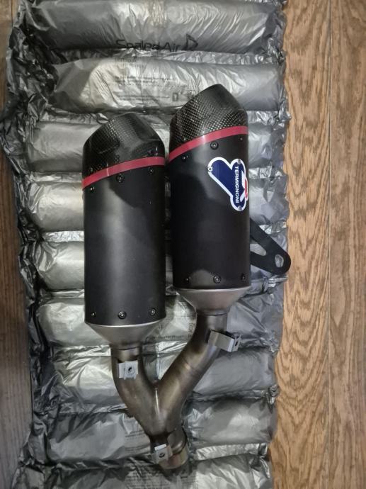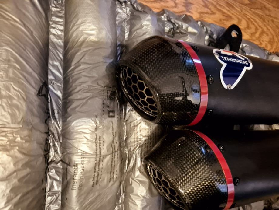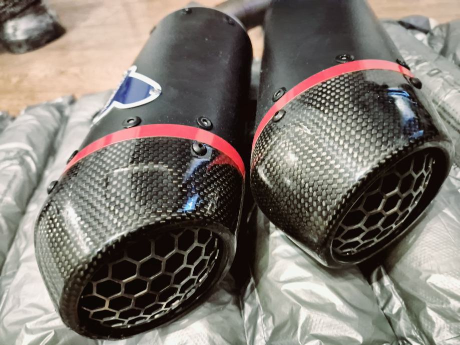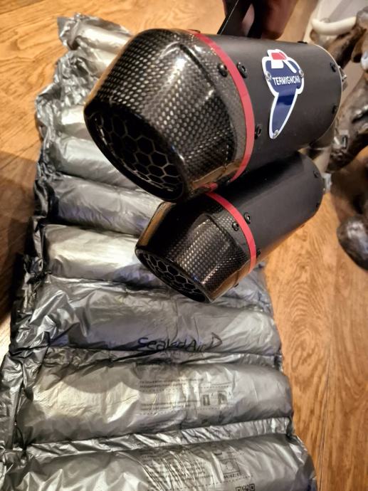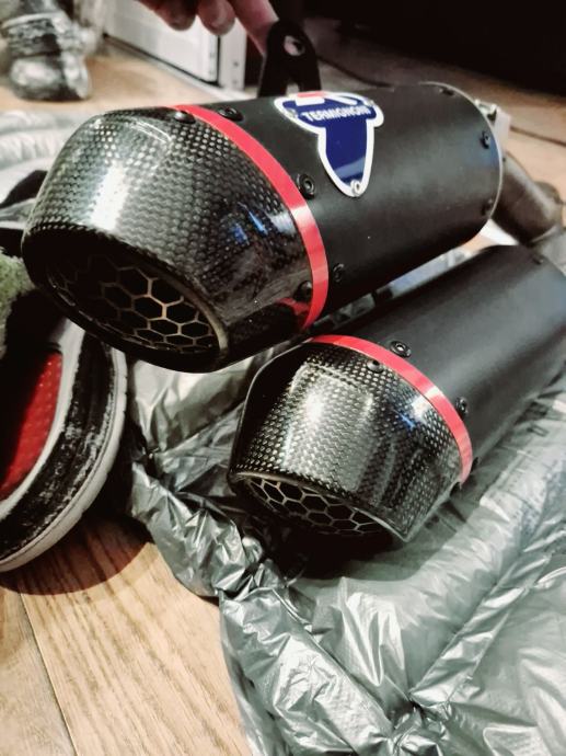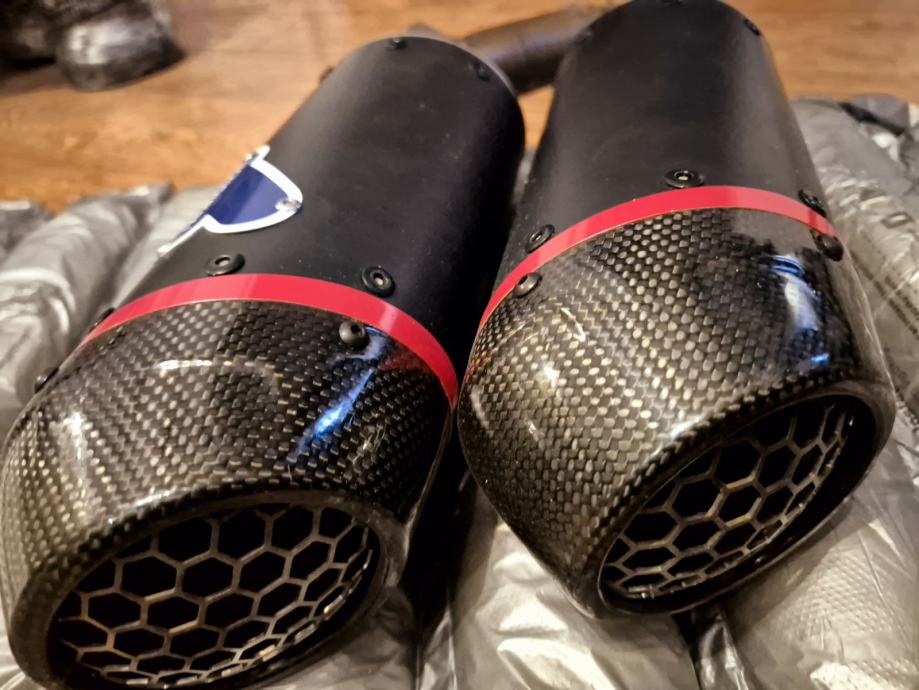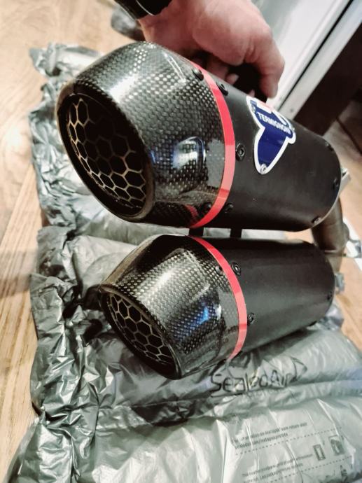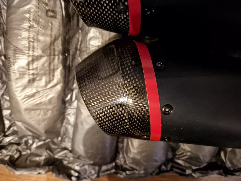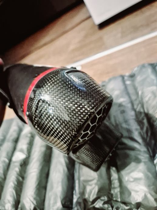 Prodajem novi auspuh skinut sa motora nakon tisuću km ,ima malo oštećenje na vrhu karbonske kapice.Ne primjeti se,može se promjenit isto,ali