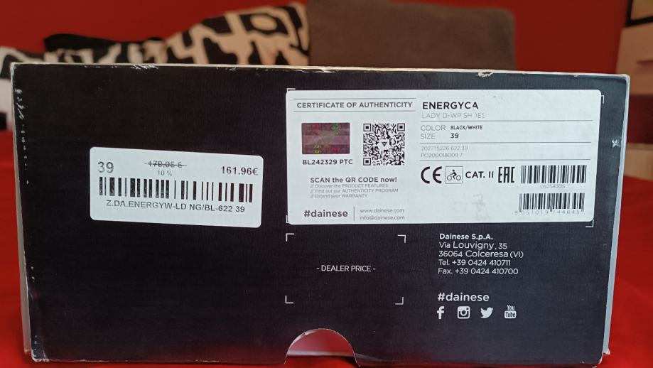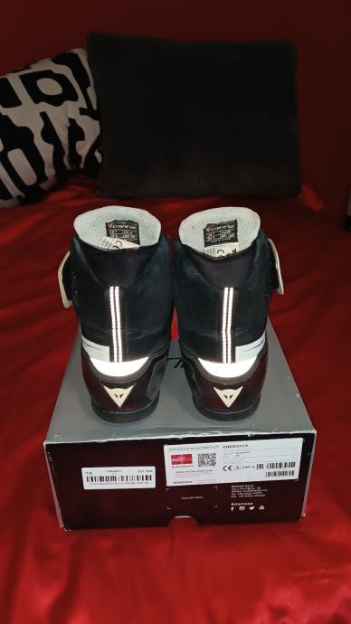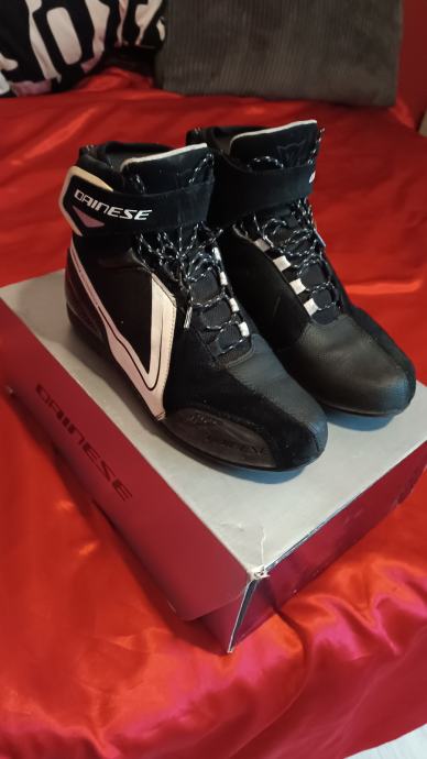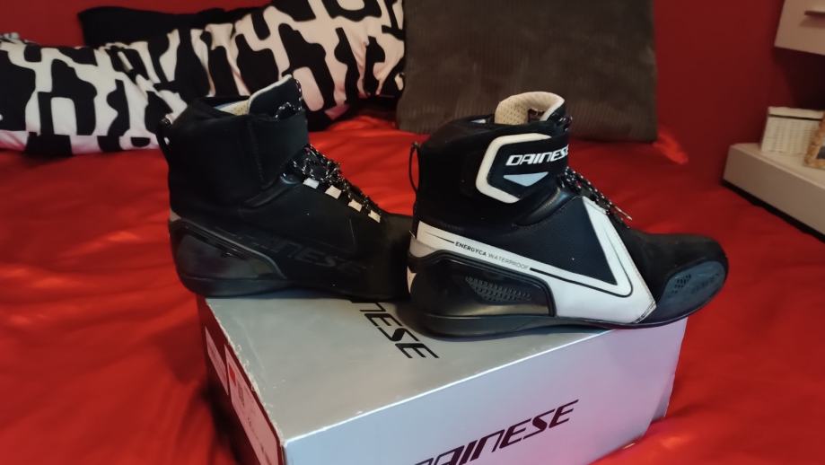 Ženske cipele Dainese Energyca D-WP, crno/bijele. Posebno dizajnirane kako bi osigurale optimalno žensko pristajanje. Urbane cipele sportskog dizajna s vodootpornom D-WP membranom. Izrađene od kravlje kože s krutim umetcima u gležnjevima, ojačanom strukturom pete i ojačanjem ručice mjenjača. Imaju vezice u kombinaciji s čičak trakom oko gležnja.