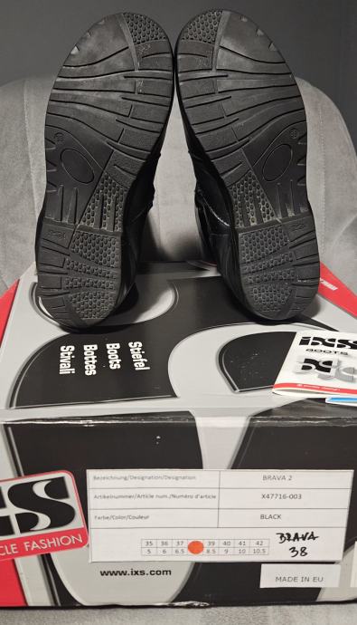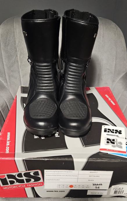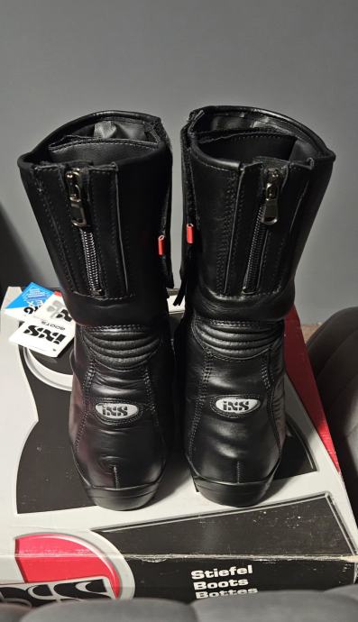 IXS crne kožne moto čizme. Veličina 38. Nošene nekoliko puta. Blago oštećenje (vidljico na slikama). Original kutija, etiketa. Kupljene u Šepić Commercu, plaćene 1.770 kuna. Cijena 150 eura.
