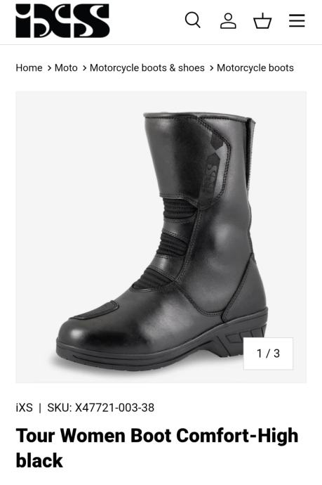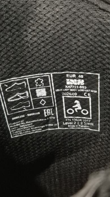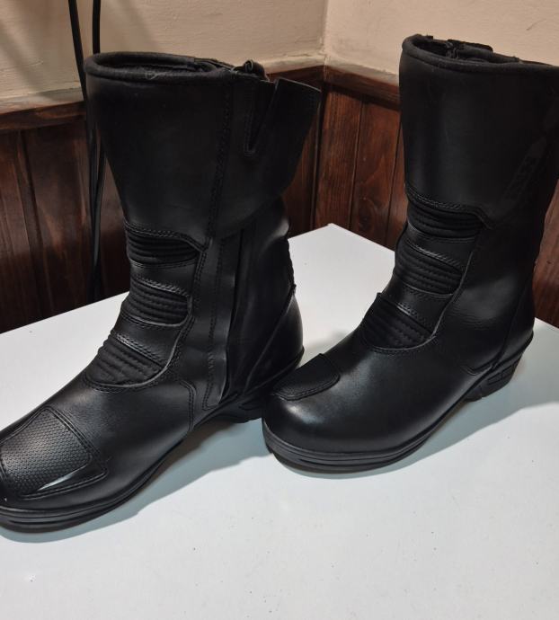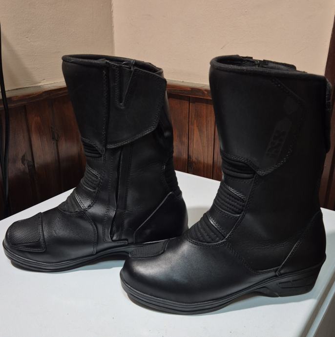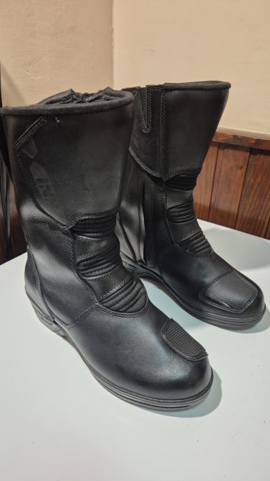 Radi se modelu IXS Tour Women Boot Comfort-High black. Kupljene ove godine nošene 2 puta i ne odgovaraju mi. Čizme su namjenjene ženama koje trebaju koji centimetar više kod vožnje motora. Dodaju 3cm u području prstiju i 6cm u području pete. Razina zaštite AA
