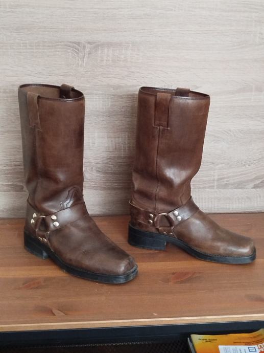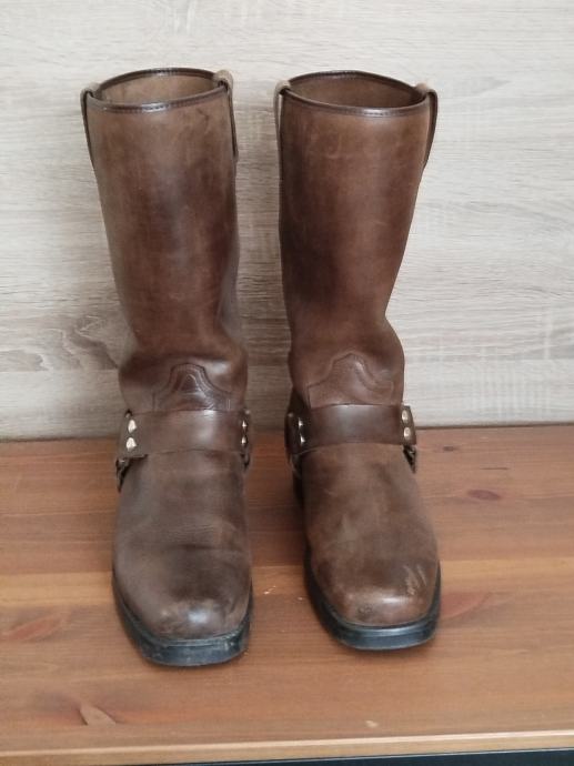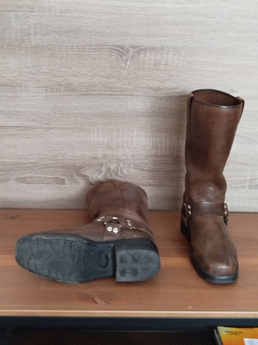 Motorističke čizme, smeđa koža, veličina 43, protu klizni đon. Malo nošene sa blagim znakovima korištenja. Idealne za vozače choppera i classic motora.