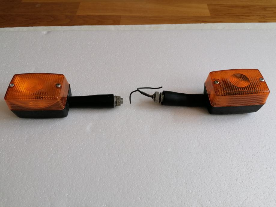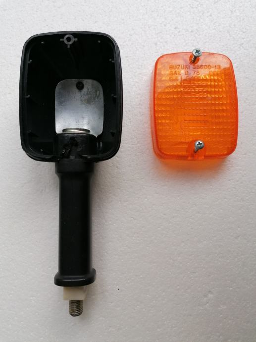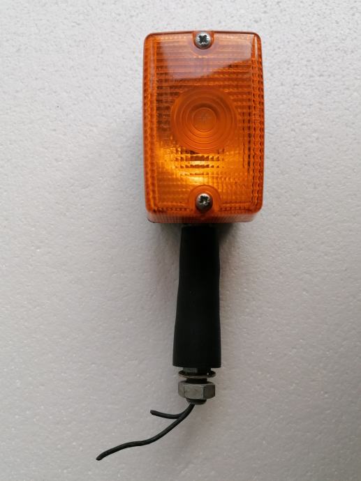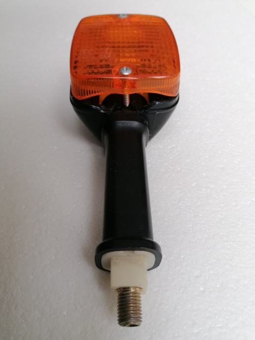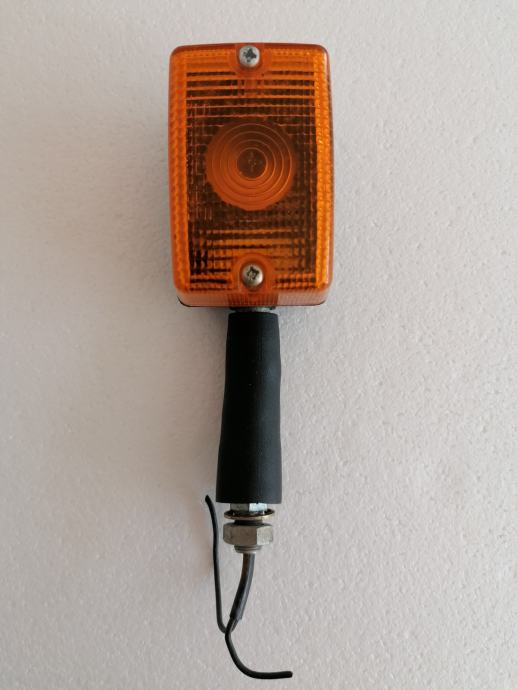 Prodajem dva potpuno jednaka žmigavca za starije modele motocikla (na slici izgledaju različito, ali su isti) od kojih je jedan kompletan, a kod drugog žmigavca nedostaje sjenilo sa grlom za žarulju.