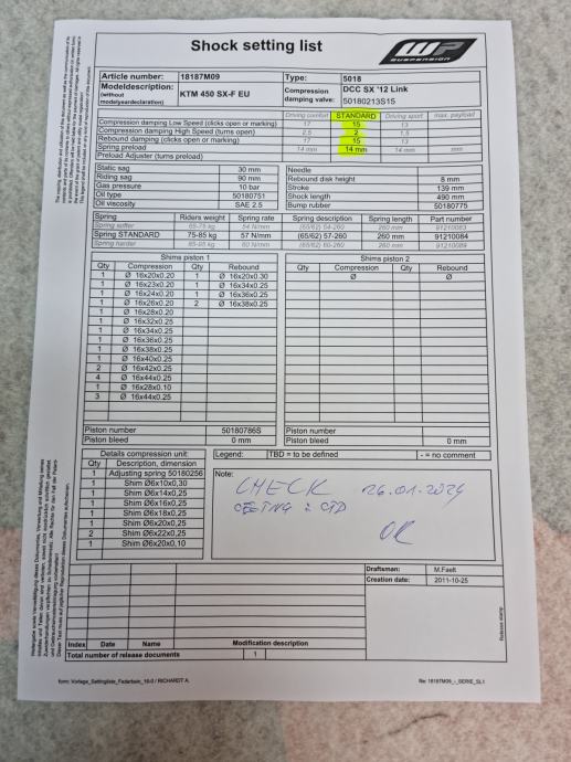 - sa ugrađenom standardnom oprugom 57-260 N/mm za vozače težine 75-85 kg