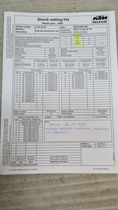 - sa ugrađenom standardnom oprugom 66-250 za vozače težine 75-85 kg