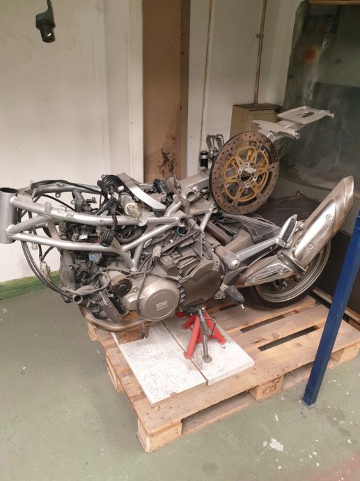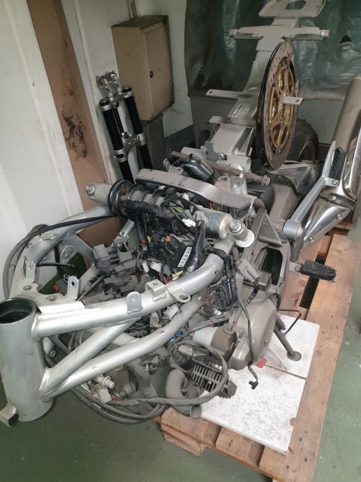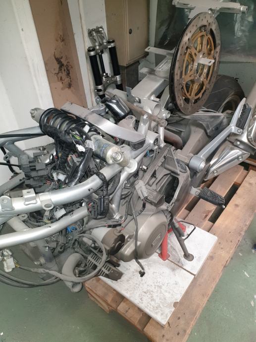 Motror je rastavljen. Potrebno poravnati ramu. Od dijelova fali prednji kotač,