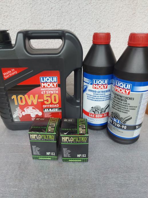 Na prodaju vrhunski set ulja i filtera za ATV, sadrzi motorno ulje, i ulja za mjenjac i diferencijale i dva filtera. Ovo su najbolja ulja na trzistu za ATV, odgovaraju na sve modele i brandove. 100% originalno, doneseno iz njemacke.