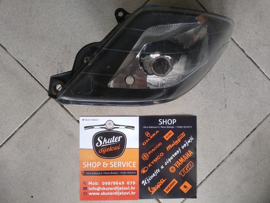 Originalan , rabljeni lijevi far sa ispravnim nosačima Gilera Nexus 250-300cc.
