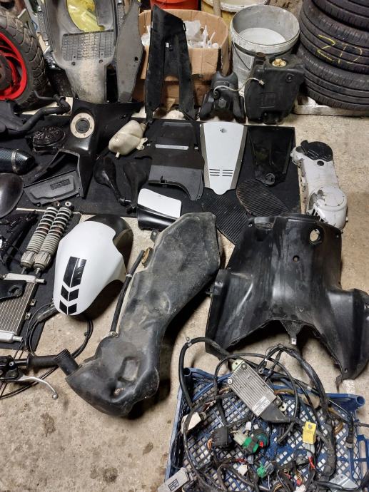 - disk prednji , relej za svijetla i žmigavce , kočnice kompletne ručice sa pumpicom te lajtunzi , variomat , amontizer zadnji , bočni nogar , filter zraka sp , regler , uljna pumpa , ručice za kočnice , čeljusti za kočnice sa disk pločicama za novi i stari tip , posuda za vodu, kompletan volan sa svime i gas sajlom , kiler sa svim crijevima