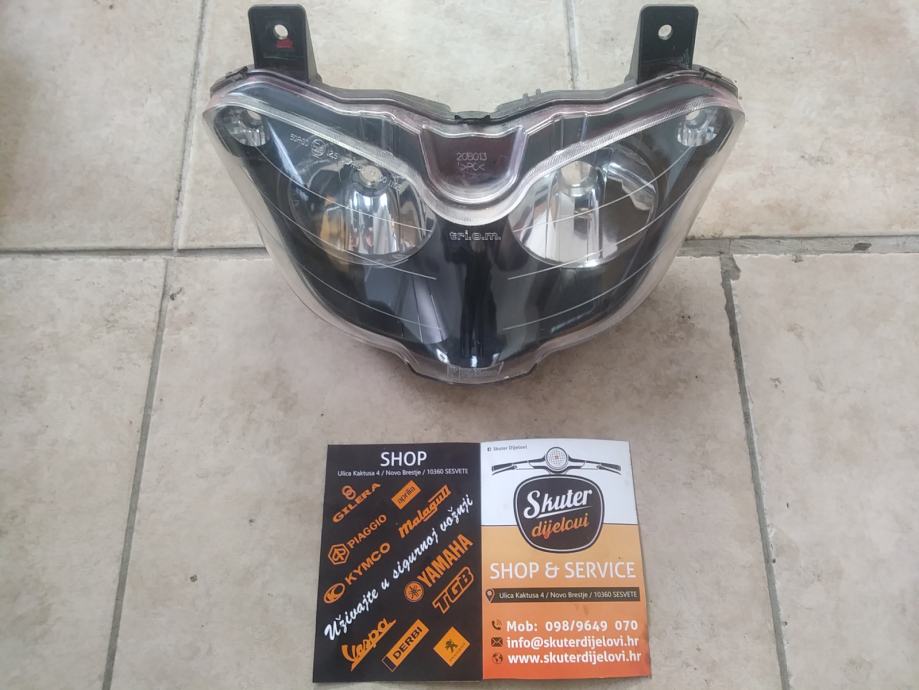 Originalno , rabljeno prednje svijetlo za novi model Gilere Runner vx 125 , vxr 200 , st 200 cc . Sa ispravnim nosačima i bez ostecenja.