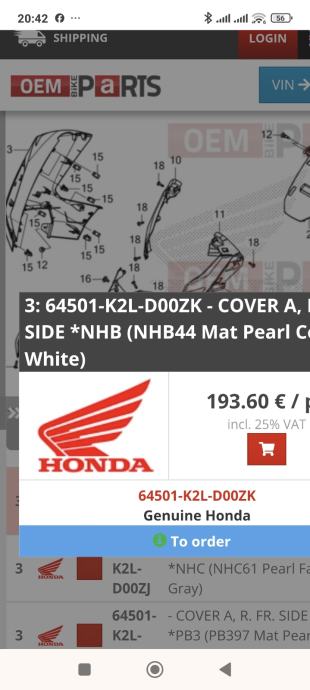 Gornja desna bočna pladtika za Hondu adv 350 2022-2023 kataloški broj 64501-K2L-D00