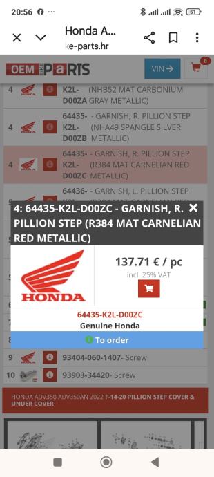 Desna podna plastika za Hondu ADV 350 2022-2024 kataloški broj 64435-K2L-D00