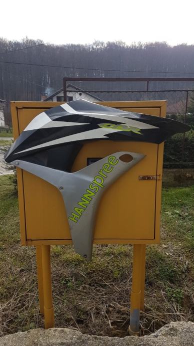 Desni oklop i poklopac rezervoara CBR600RR hannspree 2008g.,original desna strana s original naljepnicama,poklopac rezerv. Original naljepnica na lijevoj strani,desna strana farbana i nema naljepnice (pogledaj ostale moje oglase)