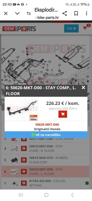 Lijevi nosač podnice za hondu XADV 750 2021 -2024 kataloški broj 50620-MKT-D00