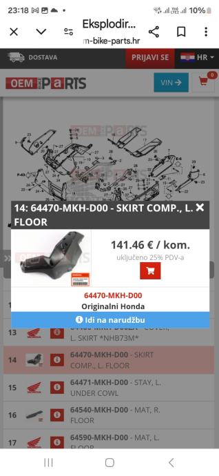 Lijevu podnicu za hondu xadv 750 2017-2014 kataloški broj 64470-MKH-D00