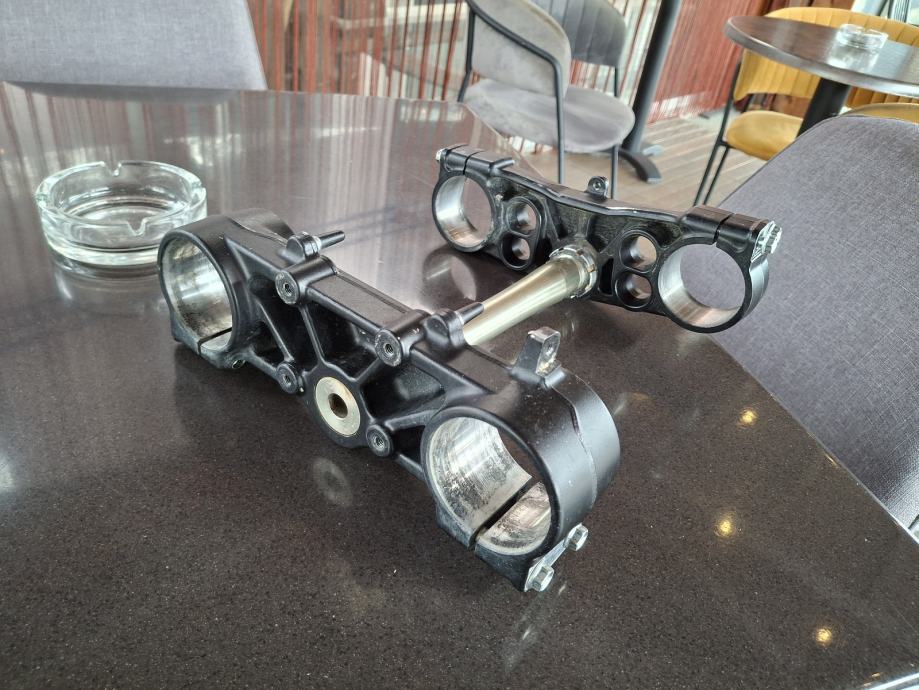 Triple clamp od navedenog modela..Vjerojatno pase i na druge modele i godine proizvodnje prije i poslje.Prodajem u kompletu gornji i donji dio.Kratko koristeno,stavljen je drugi..Kod Jakopca sam provjerio cijenu,novi kosta 793 eura.kx450,kx250