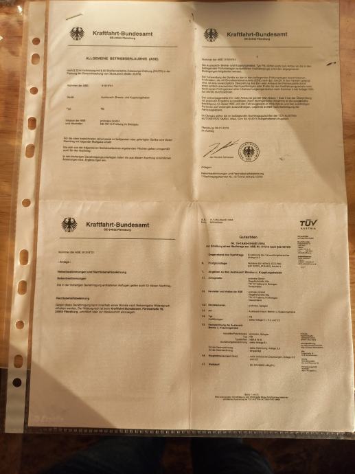 Rucice kocnice i kvacika s e brojem i papirima za homologaciju.