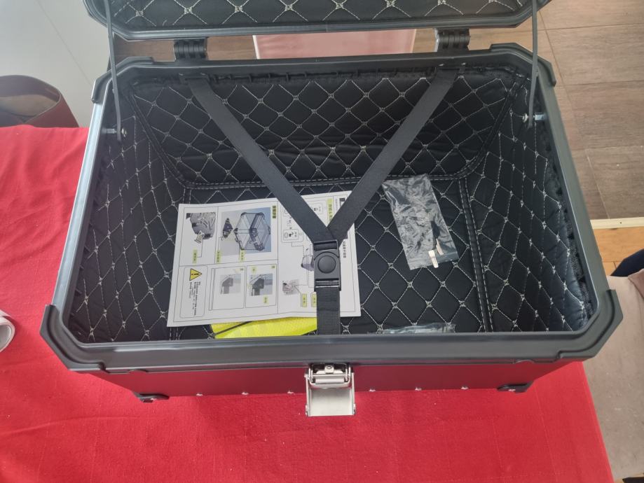 Top case 65 lit za dvije integralne kacige spojna ploča unutrašnja torba novi raspakiran za slikanje