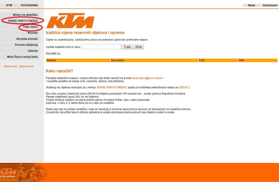 Tražilica dijelova postavljena je na našoj web stranici , meni SPARE PARTS FINDER