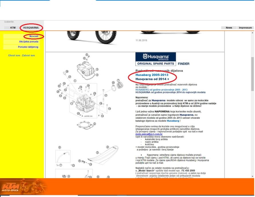 Napomena: Husqvarna dijelovi dostupni samo za motocikle proizvedene u Austriji