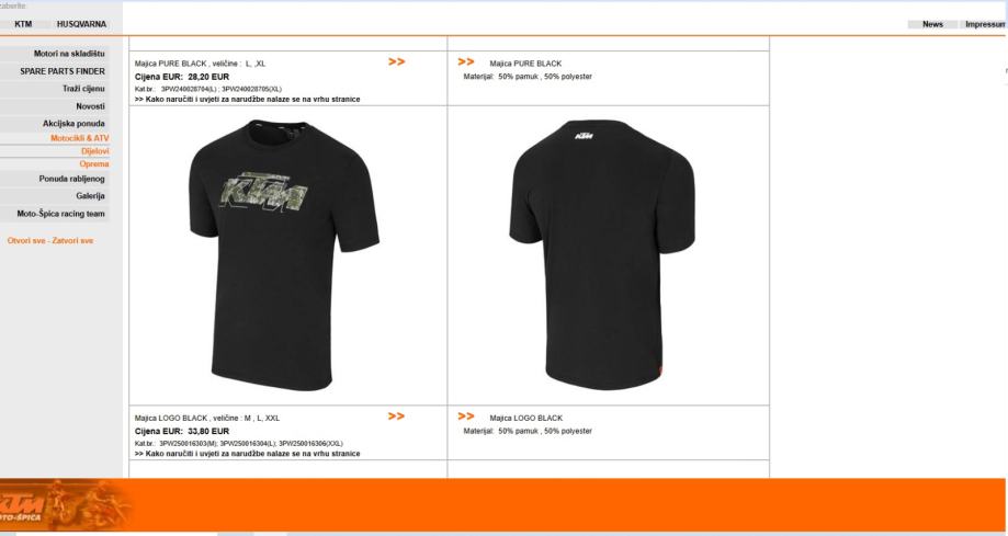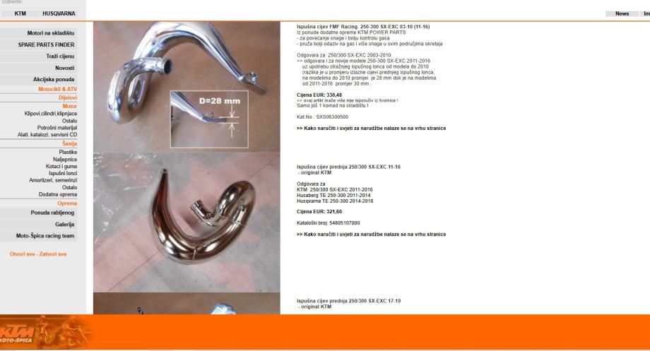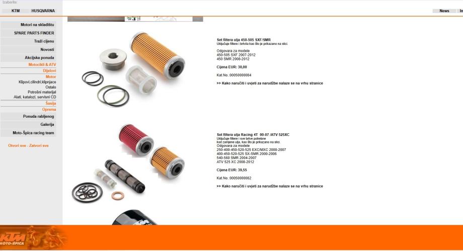 upisom kataloškog broja možete pronaći orijentacijske cijene rezervnih dijelova KTM ,