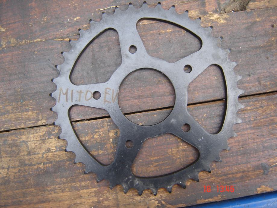 stražnji lančanik CAGIVA Mito 125 EV, 41 zub, promjer rupe 62 mm, 5 rupa za vijke 8 mm, najudaljeniji razmak od centra rupa za vijke cca 110 mm