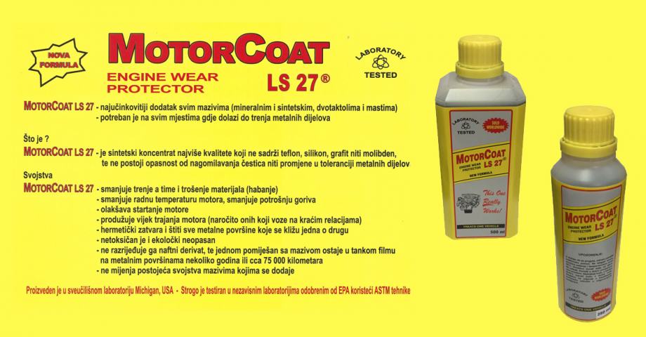 MOTORCOAT LS 27 - sintetski koncetrat najviše kvalitete koji ne sadrži teflon, silikon, grafit niti molibden, te ne postoji opasnost od nagomilavanja čestica niti promjene u toleranciji metalnih dijelova.