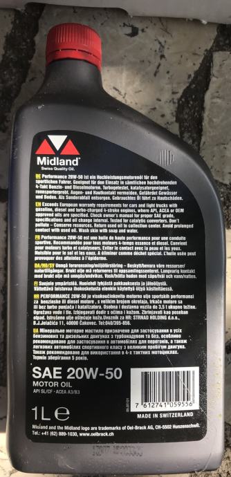 Novo neraspakirano = 1 lit = Midland Motor Oil Performance SAE 20W-50