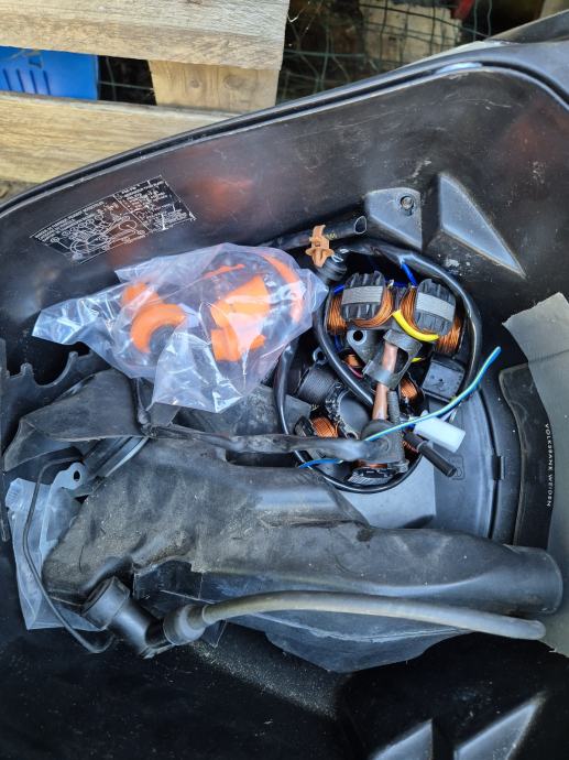 Na motoru nova klipnjaca,klip,cilindar,nova struja(namotaji,bobina),cdi..ali motor i dalje ne pali. Uz skuter dolaze i nove zadnje pakne i jos neki dijelovi.