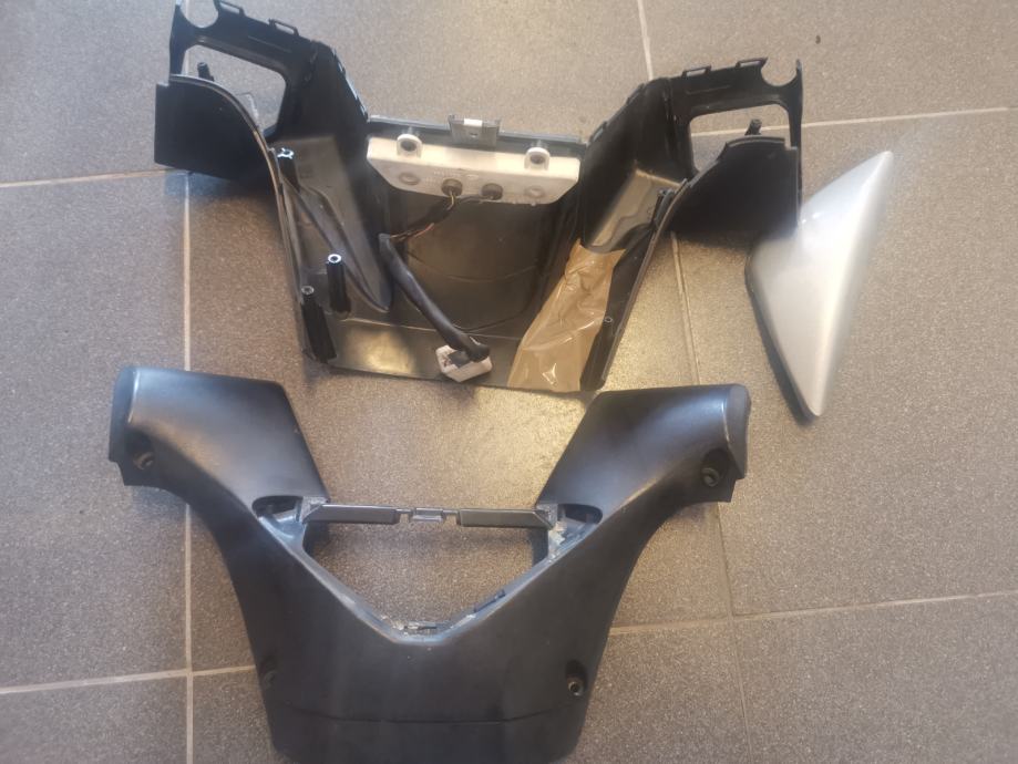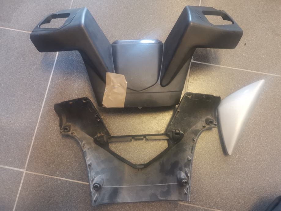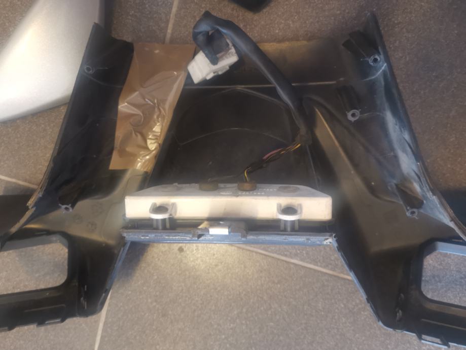 Puknut jedan nosač na prednjoj plastici dole desno. - di je trakom zaljepljeno.