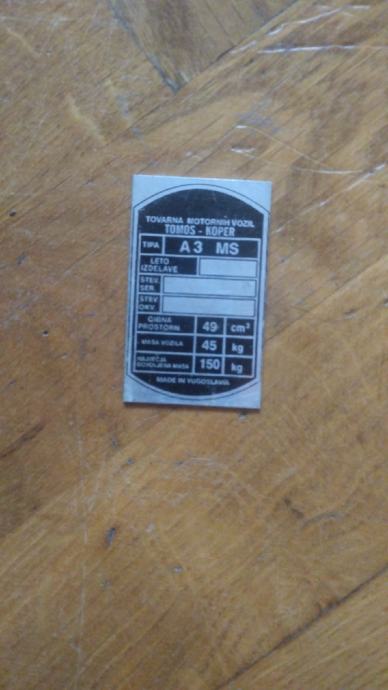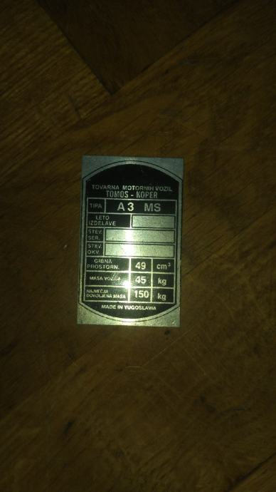PRODAJEM NOVU PRAZNU PLOČICU ZA MOTOR TOMOS A3 MS
