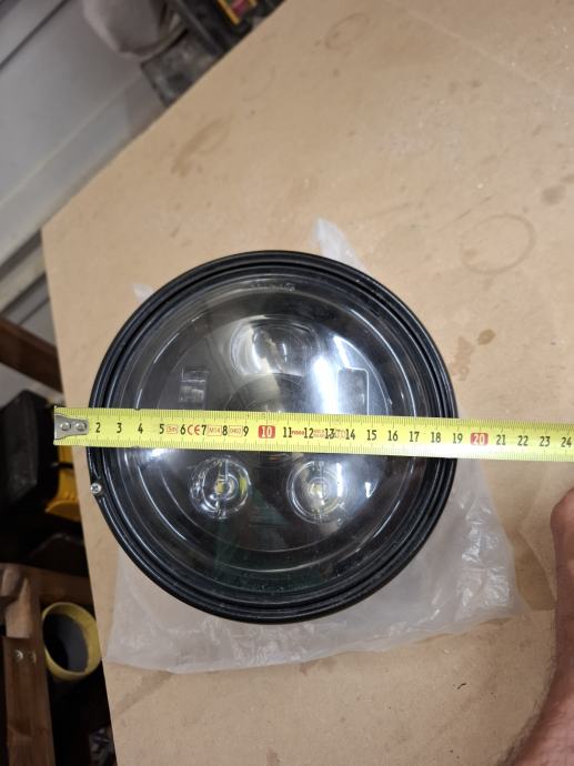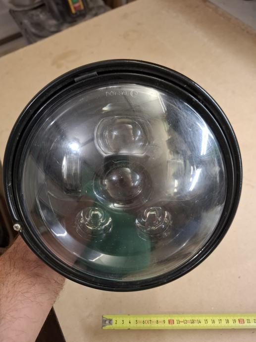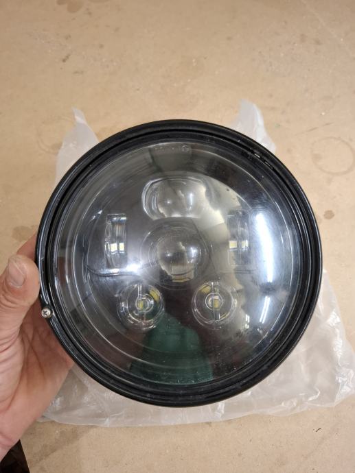 Prednje led svjetlo za motocikl promjera cca 20 cm s priključkom koji se ukapča direktno u H4 grlo umjesto sijalice. Ima bočne i donji prihvat sa M8 navojima i rupu sa zadnje strane za skrivanje kablova.