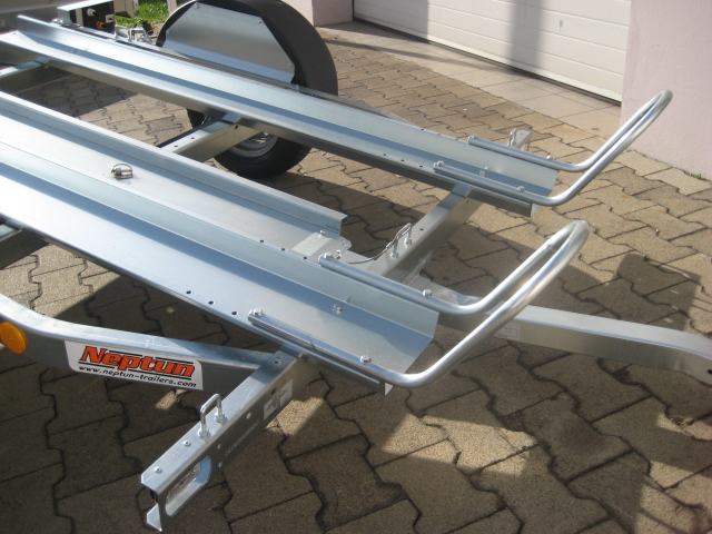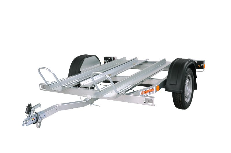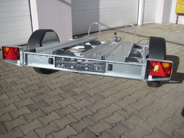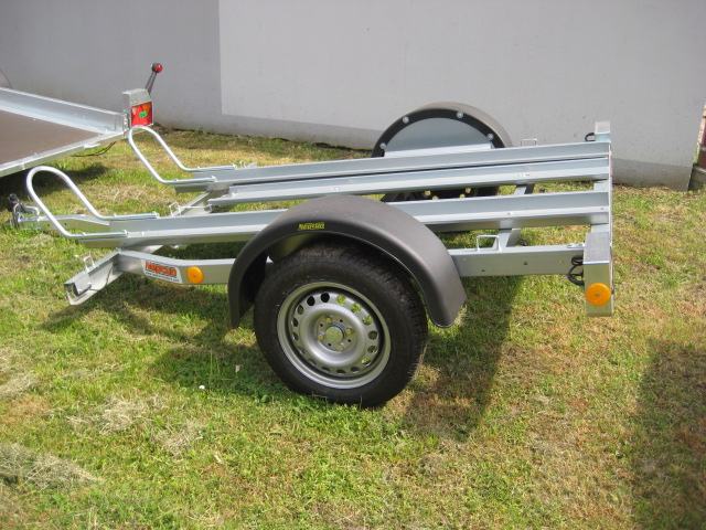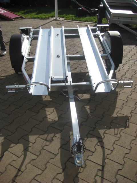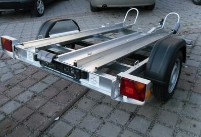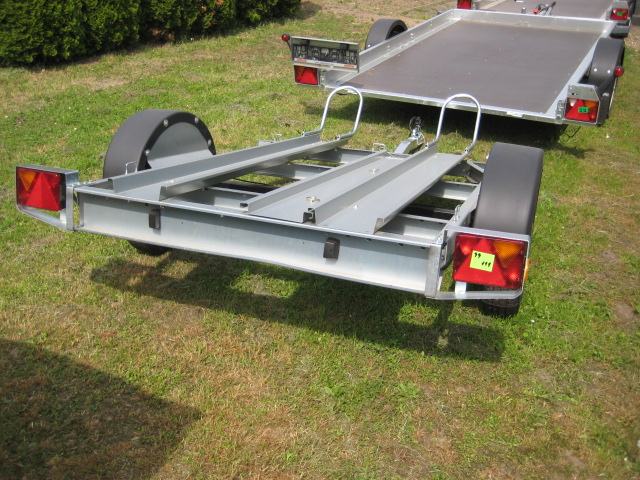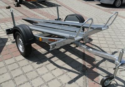 Prikolica za prijevoz 2 motora. Uključen 1kom navozne rampe.