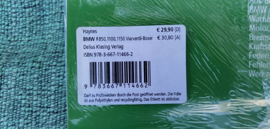 Prodajem zapakirani Haynes repair manual za motocikle, marke BMW sa boxer R motorima. Manual je na njemačkom jeziku.