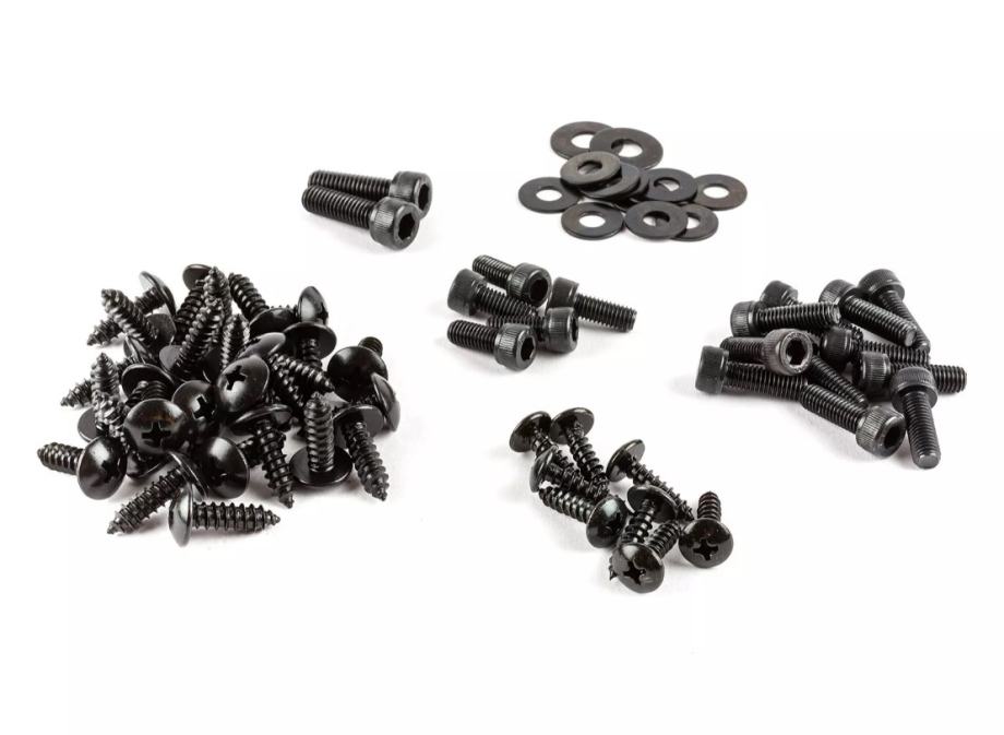 Vijci za oblaganje čelik crni Yamaha Aerox / Nitro - Komplet vijaka za Yamahu Aerox / MBK Nitro. Komplet sadrži Phillips vijke s glavom / vijke za lim i imbus vijke u različitim veličinama plus odgovarajuće podloške.
