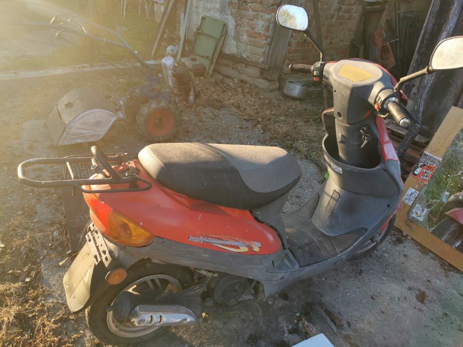 Kompletan, bez akomulatora za dijelove ili za slaganje (ne pali, ne znam što mu je), dobiven pod račun. Ima i saobračajnu. Nije fiksna cijena. Može i zamjena.