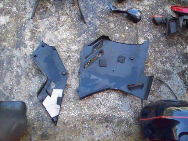prednji blatobran 30 eur, prednji oklop PRODAN, bočni oklopi 60 eur komad, trokut što povezuje bočne oklope 40 eur, mali bočni oklopi (ispod sjedala) 30 eur komad, rezervar 250 eur, sjedalo 70 eur, retrovizori 60 eur par. Uz to i svi originalni vijci i sve za montažu. Rep sa slike prodan.